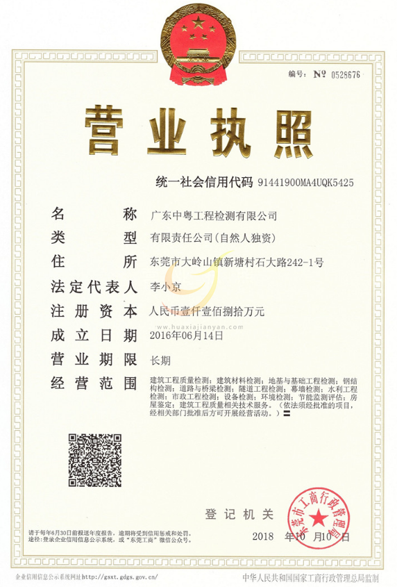 同时我司本着“公正务实、科学严谨、诚实守信、优质高效”的质量方针,严格严格遵守检测行业的职业操守。被评为广东省守合同重信用企业和广东省高新技术企业,今年也成为了东莞市建设工程检测协会副会长单位。