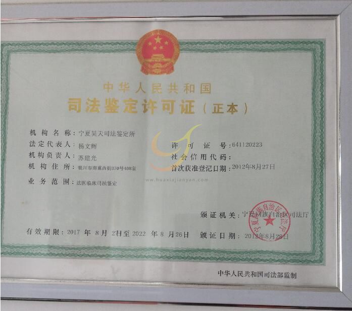 执业人员:本所现拥有一支稳定的高素质的执业鉴定队伍,其中:宁夏昊天司法鉴定所,为自治区司法厅审核批准设立的综合司法鉴定机构,现有工作人员7人,其中:中级法医师3人、医师2人。取得司法鉴定执业人员5人,鉴定辅助人员2人。