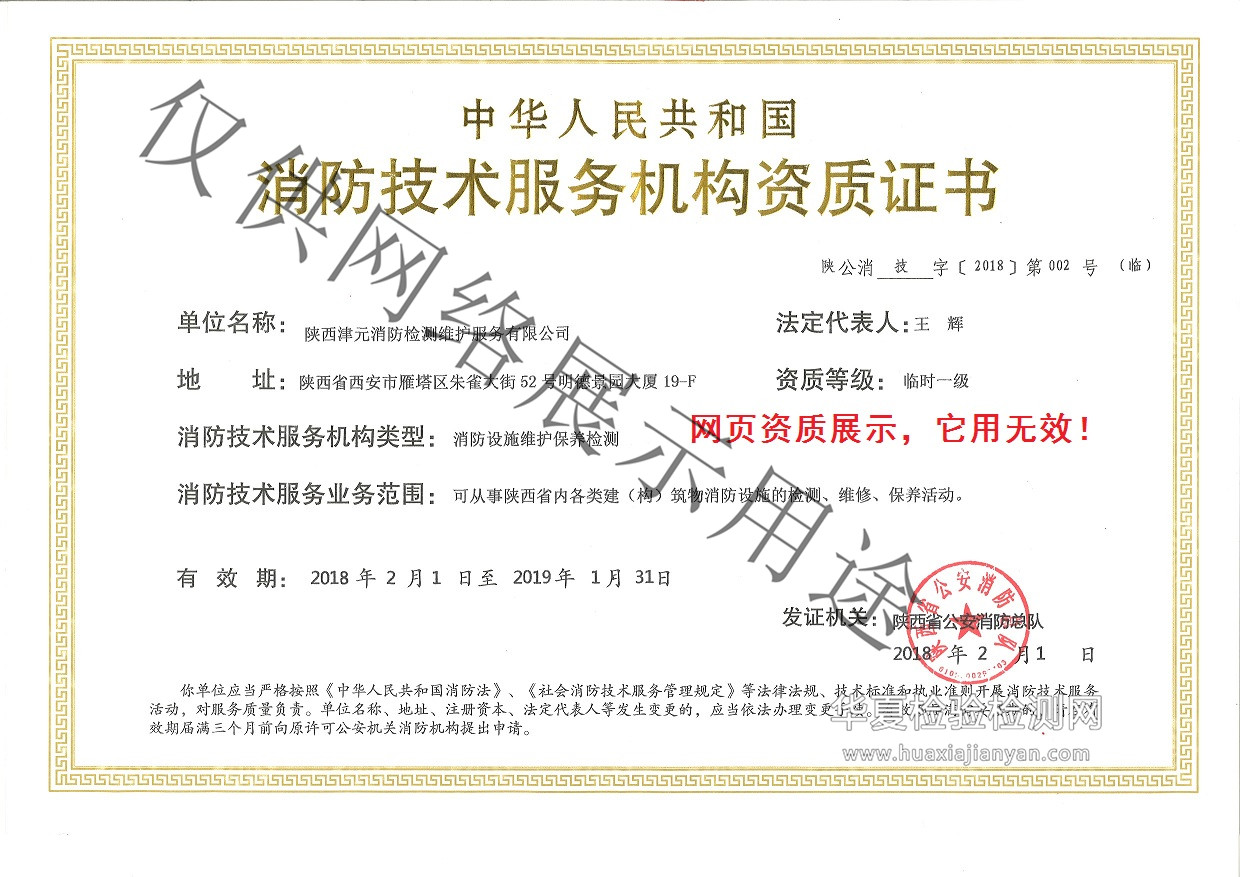 我公司在2011年便取得陕西省质量技术监督局颁发的《计量认证证书》,并于2015年10月成为第一批取得《消防技术服务机构一级资质》单位。成立以来以“诚信为经营理念,以科学的方法施检,优质服务,严谨负责。”为广大委托单位和消防监督部门提供科学真实的依据,为社会提供安全氛围。