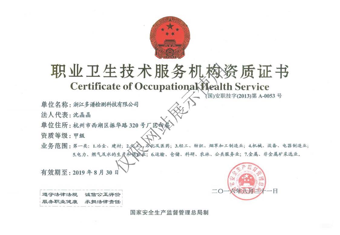 3、2007年11月,公司获得了浙江省卫生厅颁发的职业卫生技术服务资质。[证书编号:浙卫职技字(2007)第006号]。